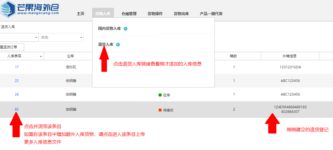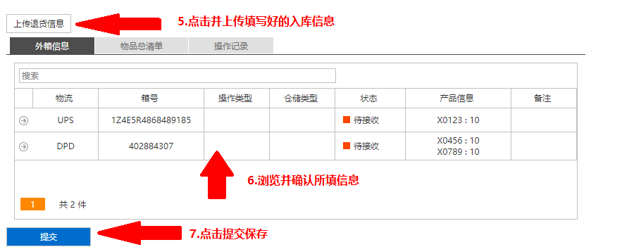 在用户退货到达海外仓之前,用户需要在系统内建立退货登记信息,否则将有可能导致货物拒收。